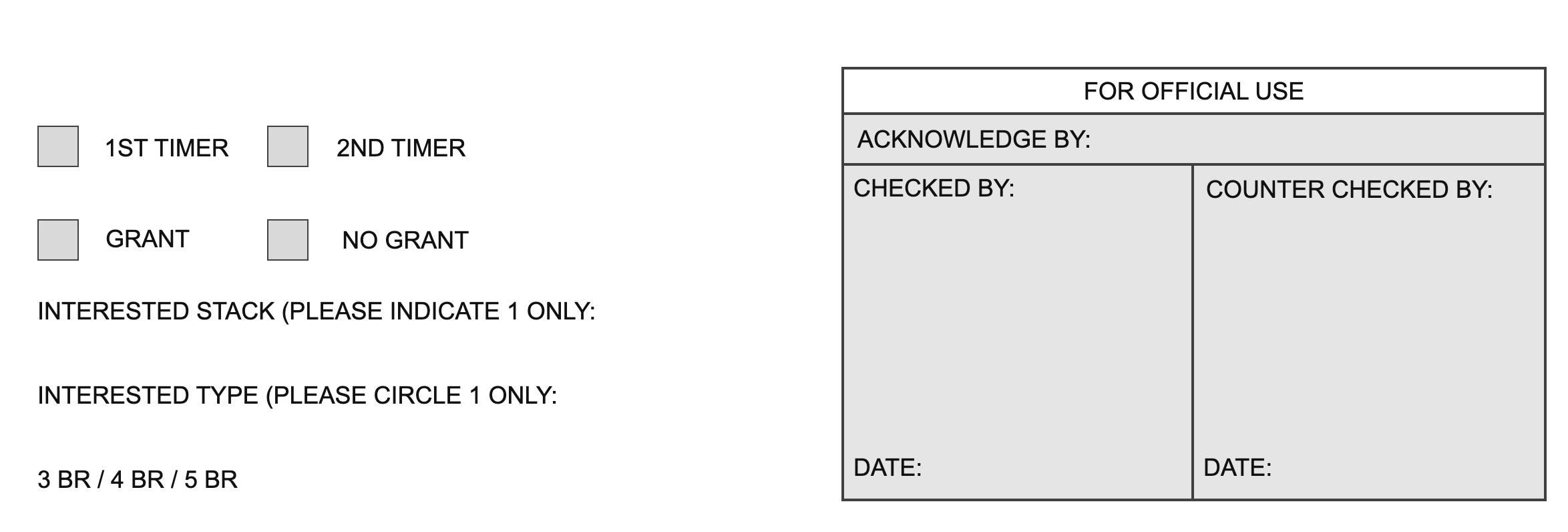Request For CPF Housing Grant (For eligible applicants who have not enjoyed any housing subsidy):